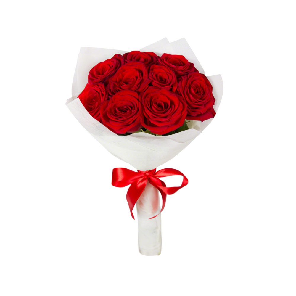Букет из 9 красных роз в фетре