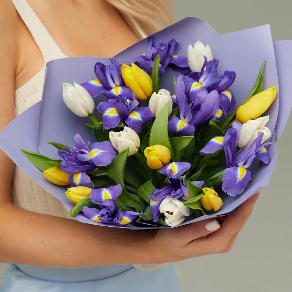 Букет из ирисов и тюльпанов «Весна»